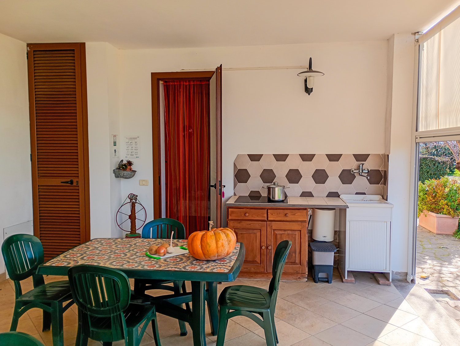 L’Appartamento Stella è un bilocale composto da camera matrimoniale, cucina con divano letto, bagno. Questo appartamento è confortevole per i disabili. Ha il porticato in comune con la camera Arcobaleno.
